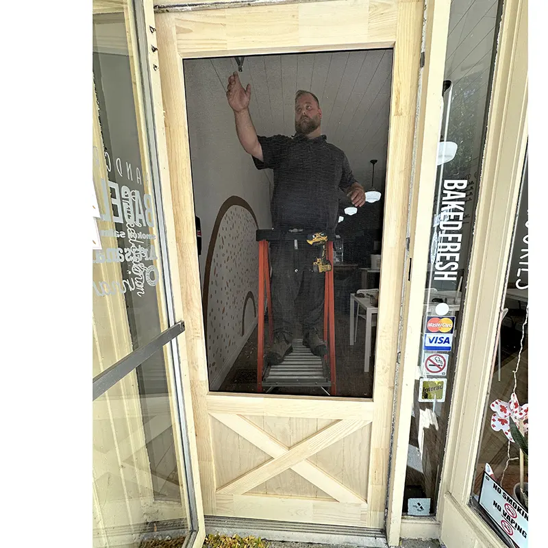 Happy to help our friends over at Hunter's Holy Dough put in this new screen door. Go check out their amazing selection of tasty breakfast and lunch meals!