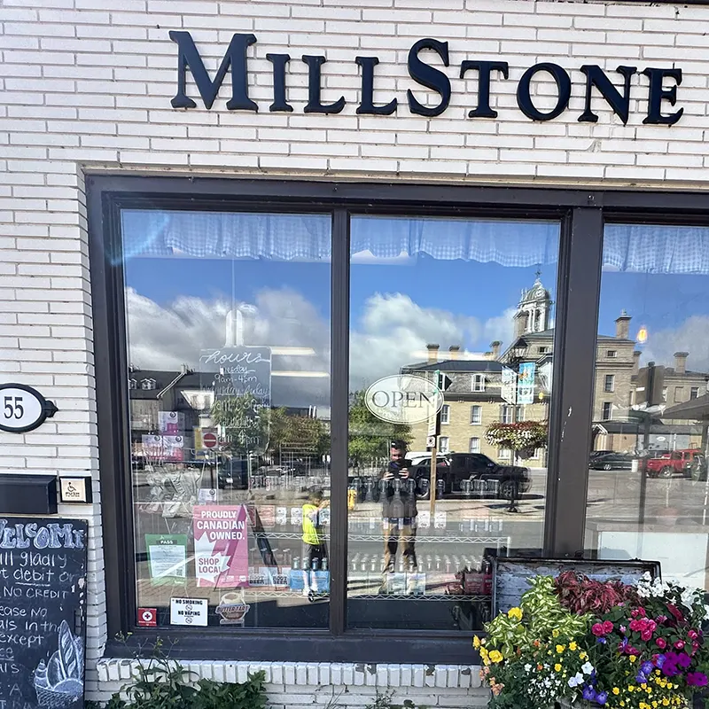 Time to accommodate! This project we removed a door and frame too small for wheelchair access and had our good friends at SP Masonry help to cut back the brick so we could install the new door and frame. We included new exterior hardware, a new operator and two push buttons. Millstone Bread is now accessible for everyone by a push of button.